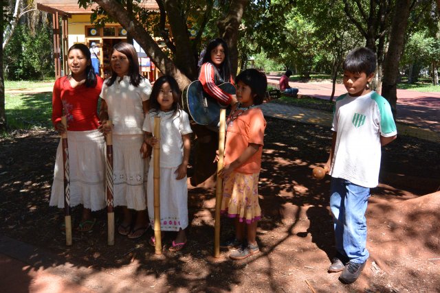 Дети индейцев гуарани в парке. Кстати, "игуасу" в переводе с языка гуарани - "большая вода". Водопады Игуасу открыл в 15-м веке испанец-конкистадор дон Альваро Нуньес Кабеса де Вака. Искал золото, а открыл водопады. Индейцы гуарани, понятно, знали о водопадах гораздо раньше испанца. У них есть легенда. Бог хотел жениться на красавице Наипу из племени гуарани, но она сбежала со своим любимым на лодке по реке Игуасу. Бог рассвирепел и разрезал реку, создав водопады, чем обрек влюбленных на вечное падение.