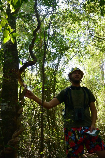 В дождевом лесу. Наш гид швед Ен. В дождевом лесу растут пальмы, папоротники, бамбук. Из птиц там - разноцветные попугаи, туканы, макао. Из цветов - бромелии, бегонии, орхидеи и т.д. Что-то из этого мы видели, что-то - нет. Например, видели двух большеклювых красавцев-туканов. Но издалека. Сфотать не получилось. Рассмотрела их в бинокль.