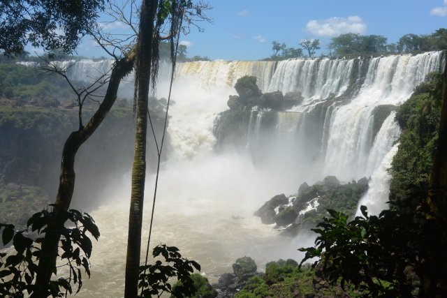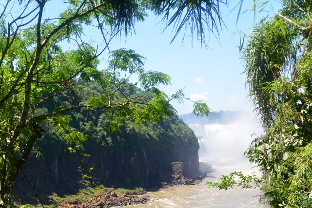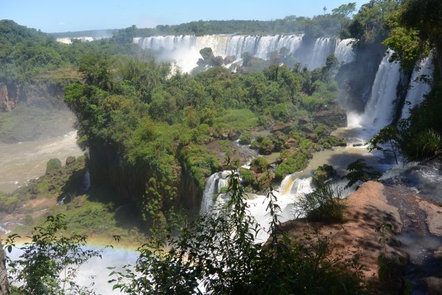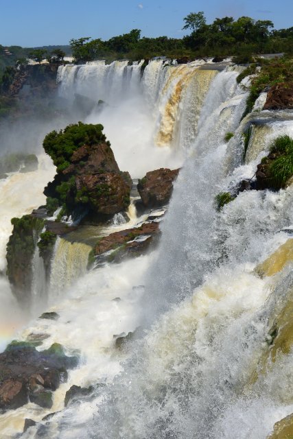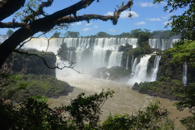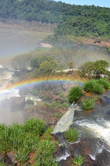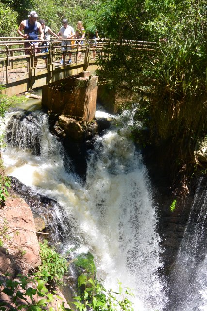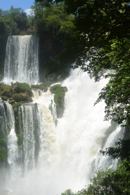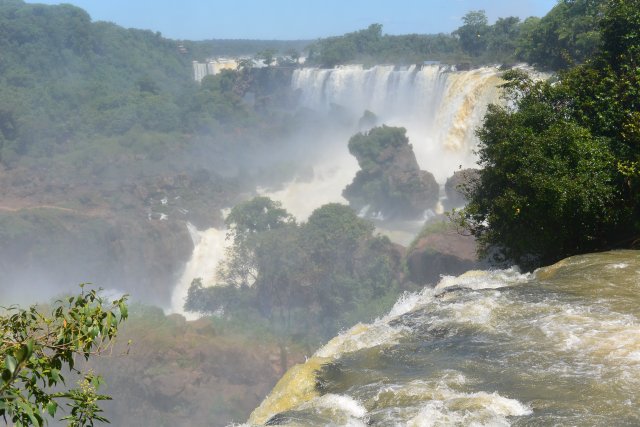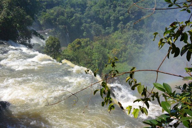 Национальные парки Игуасу есть и со стороны Бразилии, и со стороны Аргентины. На аргентинскую сторону надо отвести больше времени (6-7 часов), т.к. тут можно побывать и в деревне индейцев гуарани (недалеко от парка), на скоростной лодке подплыть близко к водопадам, да и сами пешие походы по различным тропам берут достаточно времени. Например, на тропе "Сендеро Верде" можно встретить обезьян и покормить их арахисом. Тропу "Сендеро Макузо" нам не советовали. Она, эта тропа, в 3,2 км и на ней ничего такого уж интересного нет. Водопады Игуасу (а их около 300) представляют собой: "Глотка дьявола", "Верхний круговорот воды" и "Нижний круговорот воды". "Нижний круговорот воды" - это путь длиной чуть больше 1 км по специальной тропе. Там можно увидеть различные небольшие водопады. Начинается этот путь примерно в 2-х км от Туристцентра в парке. На этом пути можно очень близко подойти к аргентинским водопадам. "Верхний круговорот воды" начинается где-то в миле от Туристцентра. С верхнего можно наблюдать вершины аргентинских водопадов, остров Сан-Мартин и часть бразильской стороны водопадов.