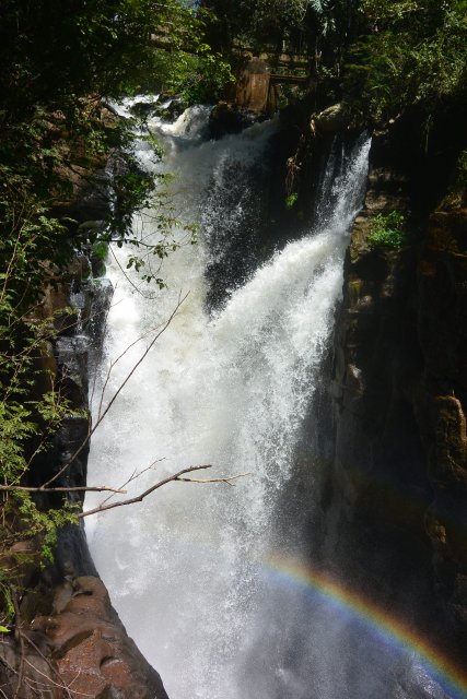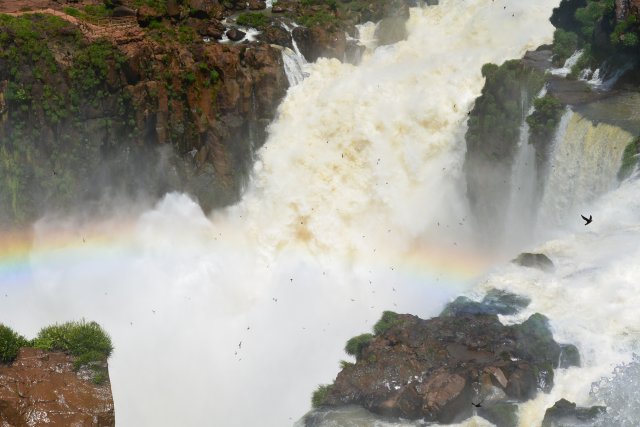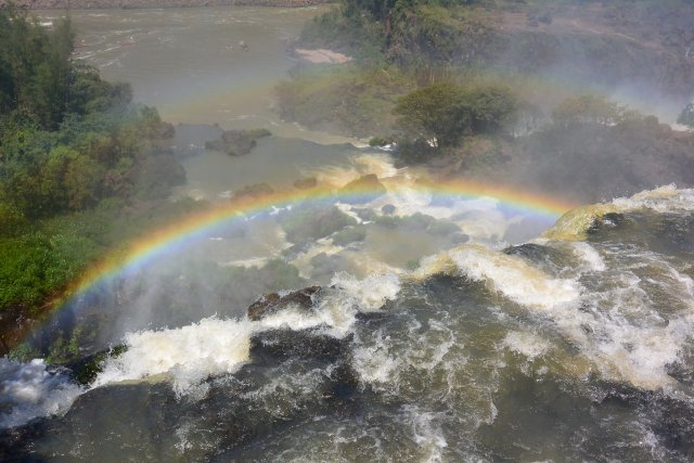 Водопад, тянущийся в Бразилию. В левом углу снимка - разноцветная радуга-дуга!