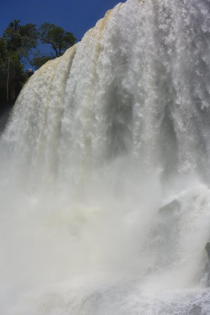 Белый ажурный в завитках водопад Боссетти. Там все водопады имеют свои имена. Мы его наблюдали, когда шли по нижнему маршруту. Даже совсем близко подходили к нему. Я как раз у него и стою на фото ( см. выше). Говорят так, быть на бразильской стороне водопадов - видеть их, а быть на аргентинской - ЧУВСТВОВАТь их. И это - сущая правда.