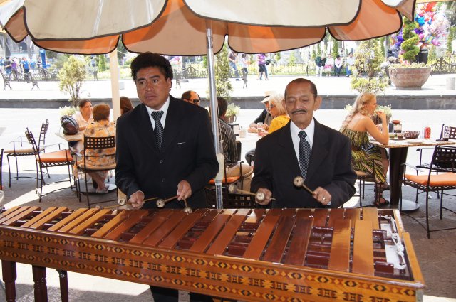 Во время обеда в кафе играли музыканты на клавиатурном ударном музыкальном инструменте (маримбафон). Маримба возникла в Малайзии, а затем стала распространенным инструментом в Мексике и в других странах Америки и Африки.