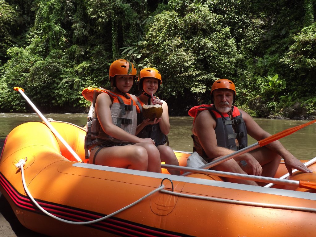 Во второй экскурсии сплавлялись по реке – было весело, купались, наслаждались видами джунглей вокруг реки, обедали (за всё 50 дол), потом было посещение Убуда, центра ремесленного Бали с кучей мастерских по резке камня, дерева, художников. Околойогические дамы пишут о какой-то особой ауре этого места, думаю – это игры переполненного впечатлениями сознания. Я занимаюсь йогой около 10 лет, и ничего, кроме курортного местечка с кучей лавочек с сувенирами, ремесленными мастерскими и дворцом с остатками королевской семьи не увидел. Рядом с Убудом располагались и деревни мастеров, но силы были на исходе, а нам ещё предстояла дорога в отель в Семиньяк, поэтому последним пунктом экскурсии стал «лес обезьян». Это большой парк, где на потеху туристам перемещаются стаи обезьян, на которых можно смотреть очень долго.